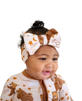 Sensitive skin baby accessories should never compromise on style. This charming Little Sleepies set features a lightweight bow that stretches easily, ensuring no discomfort for a growing baby’s head shape.