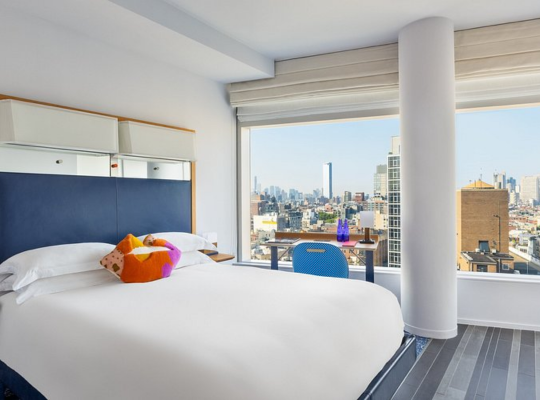 This boutique property combines East Village edge with upscale amenities near iconic landmarks. Two on-site restaurants serve diverse American cuisine, while designer stores and free bicycle rentals let guests explore the neighborhood in style.