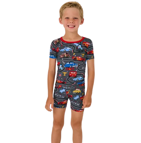 Rev up bedtime with the Disney Pixar Piston Cup Two-Piece Pajama Set! Featuring a fun, race-themed design inspired by Lightning McQueen, this set includes a short-sleeve top and matching shorts for year-round comfort. Crafted from buttery-soft bamboo viscose, it’s lightweight, breathable, and gentle on sensitive skin—perfect for active little ones who love to play before they sleep.