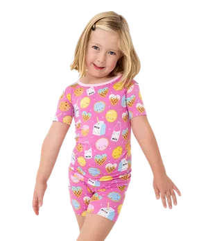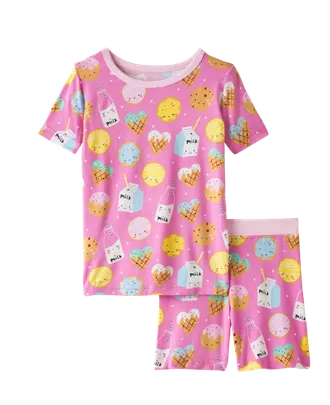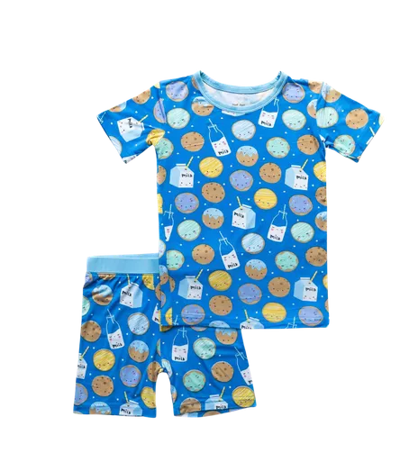 Sweet dreams start with the Cookies & Milk Two-Piece Pajama Set! This playful set features a pink, short-sleeve top and coordinating shorts adorned with adorable cookie and milk graphics. Made from soft, breathable bamboo viscose, it’s luxuriously gentle on delicate skin while keeping kids comfortable from evening playtime to bedtime.